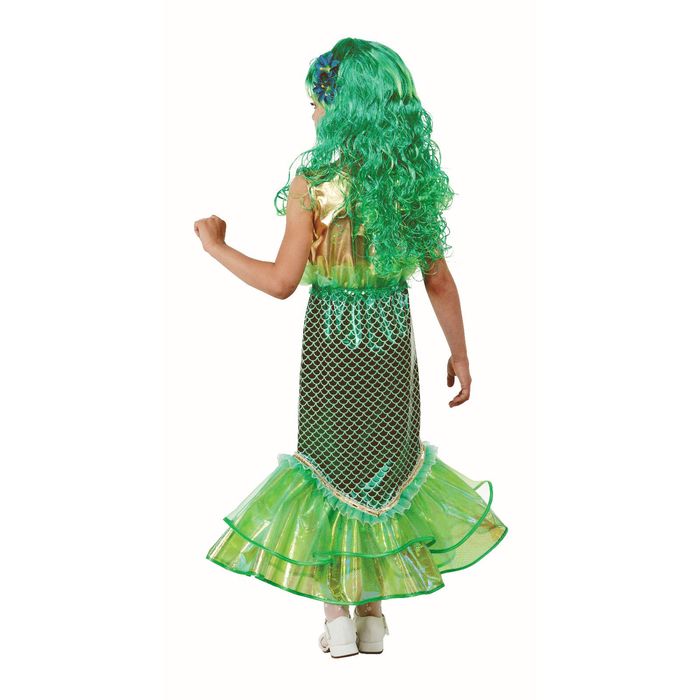 Детский карнавальный костюм "Русалочка", бархат, р-р 28, рост 110 см подойдёт для юной покорительницы водных глубин. Платье в сочетании с париком в зелёных тонах смотрятся таинственно и завораживающе. Такой образ морской красавицы станет самым запоминающимся на детском утреннике, тематической вечеринке и любом другом празднике.