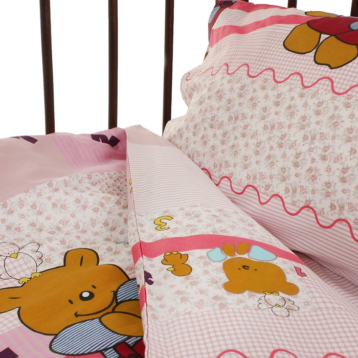 Детское постельное бельё АДЕЛЬ «Забавные медвежата», цвет розовый, размер 110х140 см, 110х140 см, 40х60-1 шт., поплин 125 г/м²