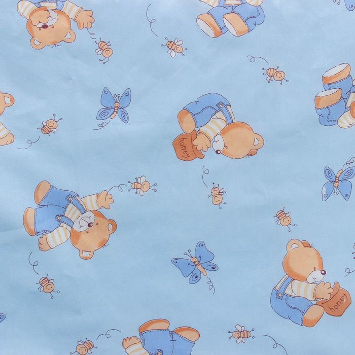 Детское постельное бельё BABY "За мёдом", цвет голубой, 112х147 см, 110х150 см, 60х60 см, бязь 142 гр/м