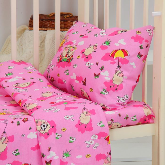 Детское постельное бельё "Экономь и Я" бейби Розовые Овечки 145х112 ± 5 см, 100х150 ± 5 см, 40х60 ± 5 см, бязь 120 гр/м²