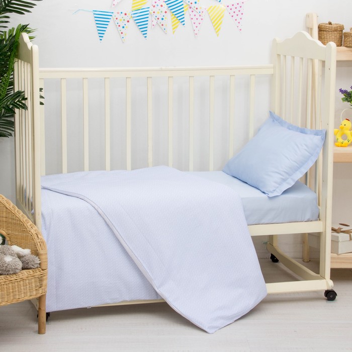 Детское постельное бельё "Паровозик" 100х140, 110х140, 60х40, цв голубой, сатин хл100 372/1