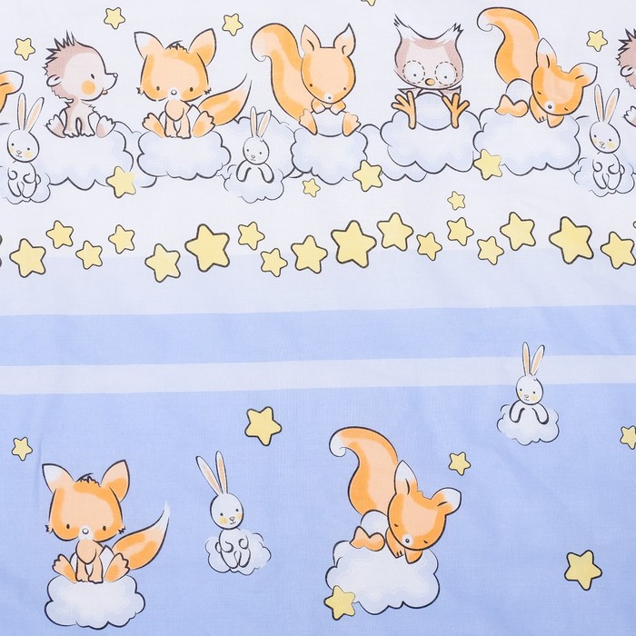 Детское постельное бельё "Зверята", 110х140, 90х150, 40х60 см, цвет голубой, бязь хл100 120 гм
