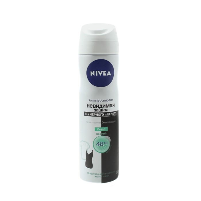 Дезодорант-антиперспирант Nivea «Невидимая защита» не оставляет белых следов на чёрной одежде, а также предотвращает появление жёлтых пятен на белой. Средство нейтрализует неприятный запах пота, уничтожая бактерии, которые провоцируют его появление.