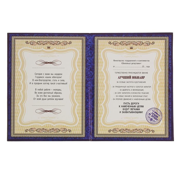 Диплом "Лучший юбиляр"