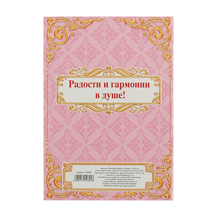 Тёплых слов не бывает слишком много. Отметить самые важные заслуги и напомнить о чувствах дорогому человеку поможет оригинальный диплом.