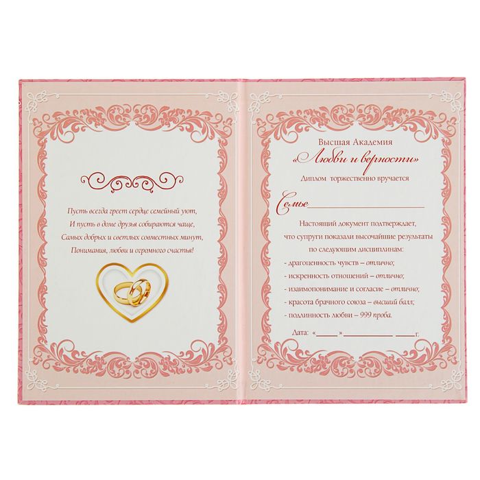 Диплом "С годовщиной свадьбы", 15х21 см