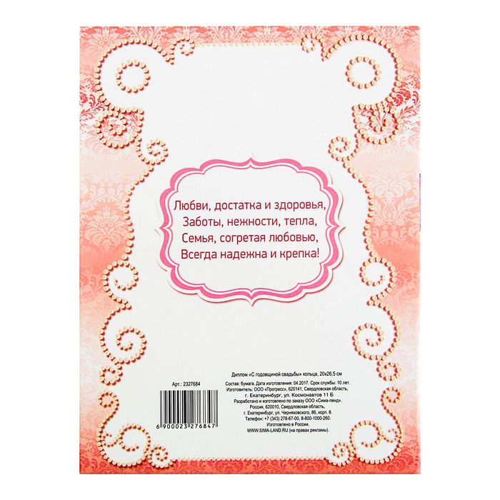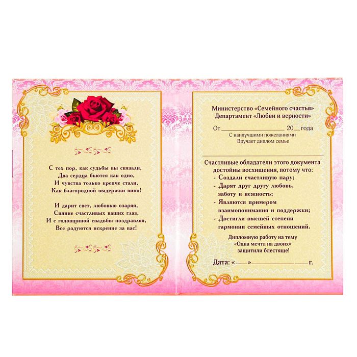 Диплом "С годовщиной свадьбы"
