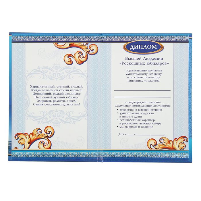 Тёплых слов не бывает слишком много. Отметить самые важные заслуги и напомнить о чувствах дорогому человеку поможет оригинальный диплом.