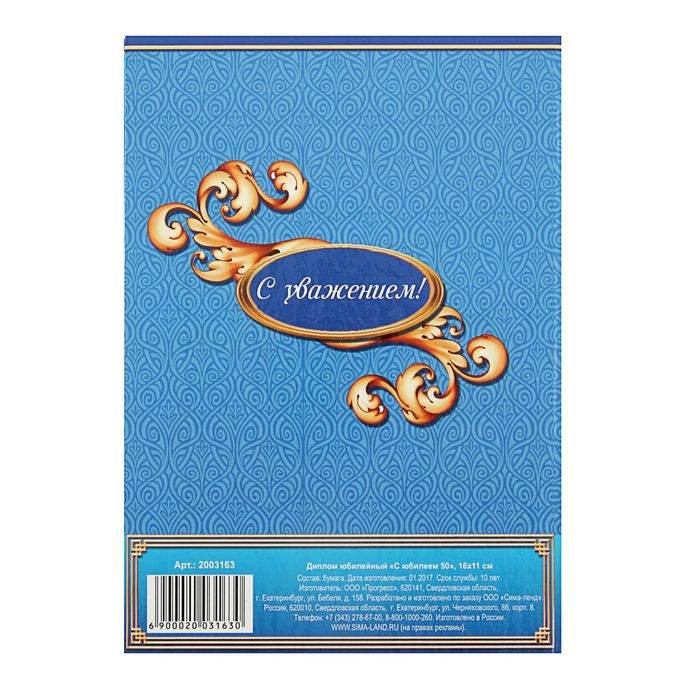 Диплом "С юбилеем 50"