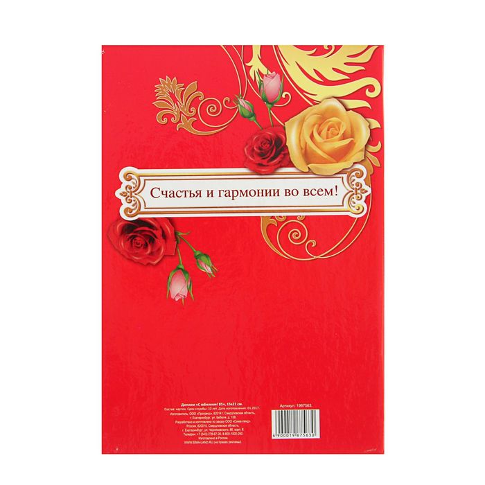 Он займёт достойное место среди официальных документов адресата, ведь будет вручён ему по праву: за самые исключительные заслуги! Изделие изготовлено из ламинированного картона и бумаги.