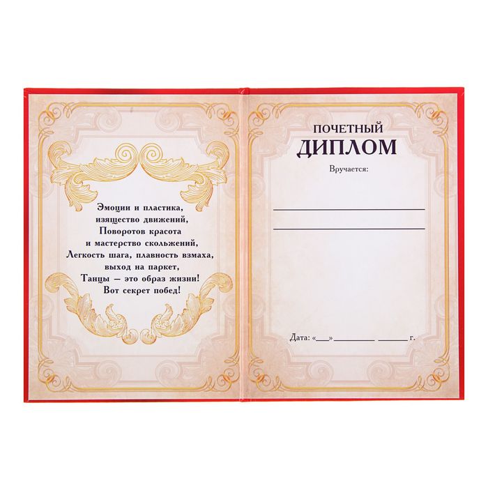 Диплом спортивный "Танцы" — награда за заслуги, которая замотивирует получателя на достижение ещё больших высот. На изделии есть поле для имени адресата и искренние пожелания.