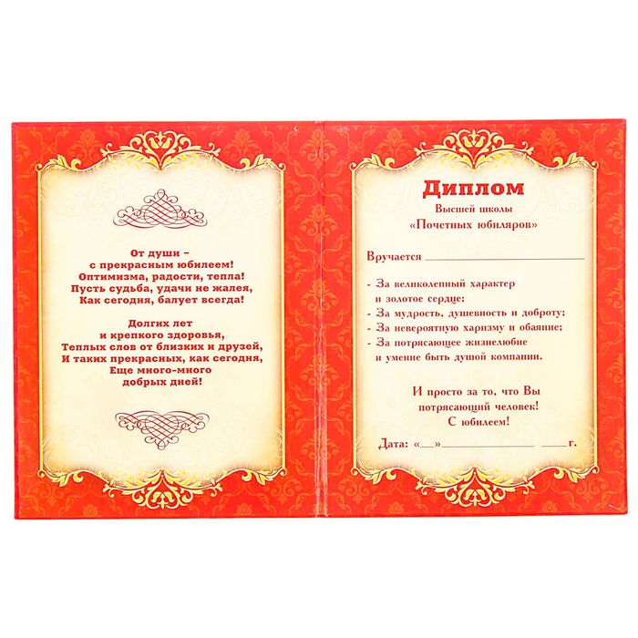 Тёплых слов не бывает слишком много. Отметить самые важные заслуги и напомнить о чувствах дорогому человеку поможет оригинальный диплом.