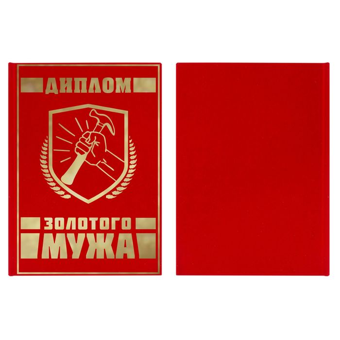 Диплом "Золотой муж" — то, что нужно для поднятия настроения и яркого поздравления! Уникальный дизайн объединил в себе эффектное сочетание красного бархата с золотыми буквами на внешней стороне и лаконичное оформление страниц внутри изделия.