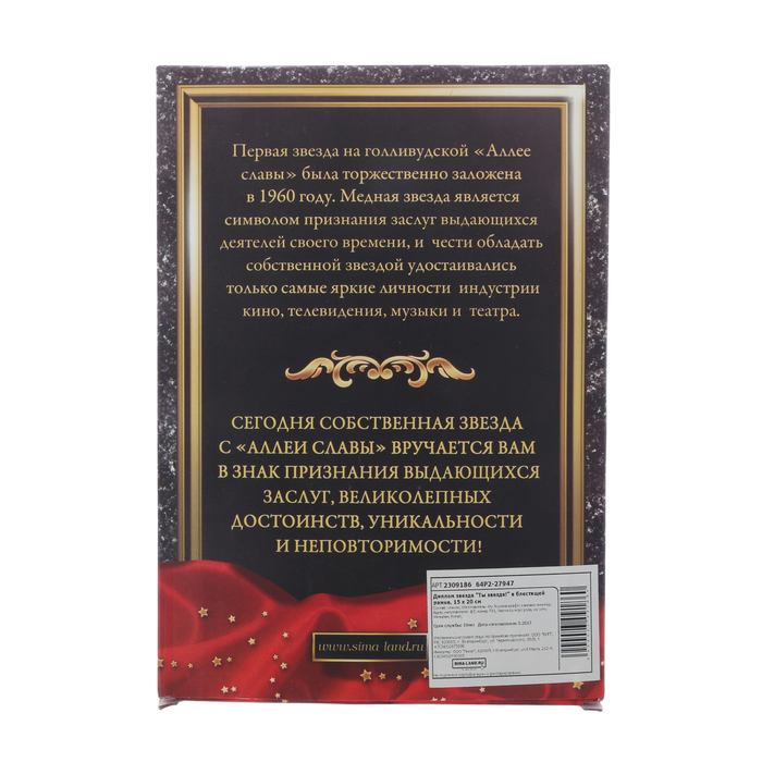 Невозможно представить нашу жизнь без праздников! Мы всегда ждём их и предвкушаем, обдумываем, как проведём памятный день, тщательно выбираем подарки и аксессуары, ведь именно они создают и поддерживают торжественный настрой. Диплом звезда "Ты звезда!" в блестящей рамке, 15 х 20 см — это отличный выбор, который привнесёт атмосферу праздника в ваш дом!