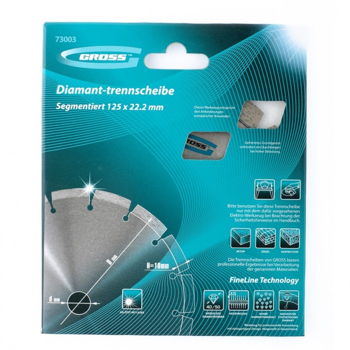 Диск алмазный Gross 73003, ф125х22,2мм, лазерная приварка сегментов, сухое резание