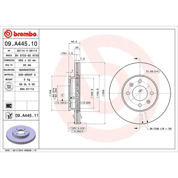 Диск тормозной Brembo 09A44510
