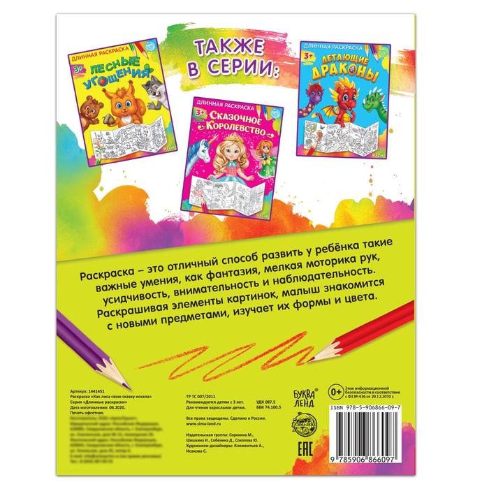 Представляем вашему вниманию увлекательную и необычную раскраску «Как лиса сказку искала». Пусть ребёнок возьмет в руки цветные карандаши и окунётся в мир русского фольклора. Рисование станет не просто хорошим занятием для малыша, но и прекрасным началом развития творческих способностей.