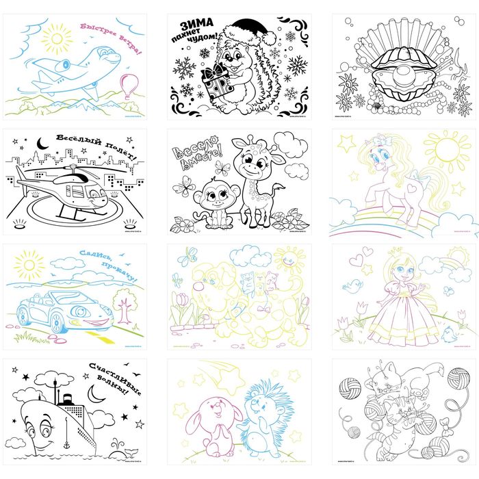 Полученную картинку легко стереть обычной салфеткой. Изображения для обводки можно использовать и как раскраску.
