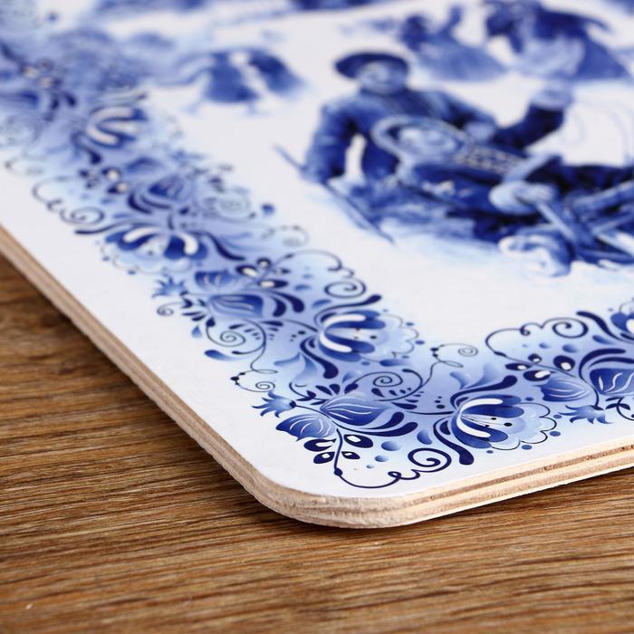 Доска разделочная сувенирная "Гжель. Катание на санках", 27,5х19,5см