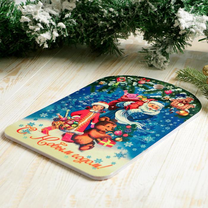Доска разделочная сувенирная "С Новым годом. Дед Мороз, Снегурочка и мишка", 27,5х19,5см