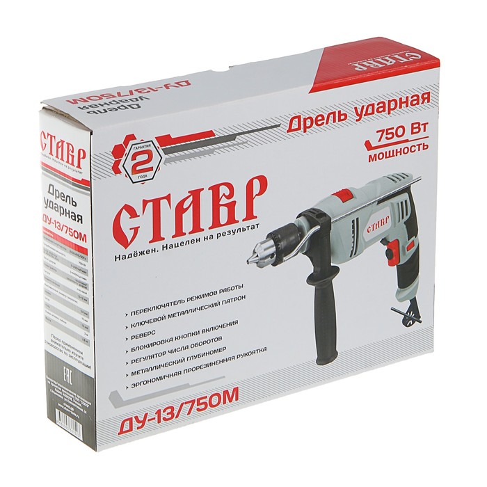 Дрель ударная "Ставр" ДУ-13/750 М, 750 Вт, 0-2800 об/мин, 0-44800 уд/мин, патрон 1.5-13 мм 360192