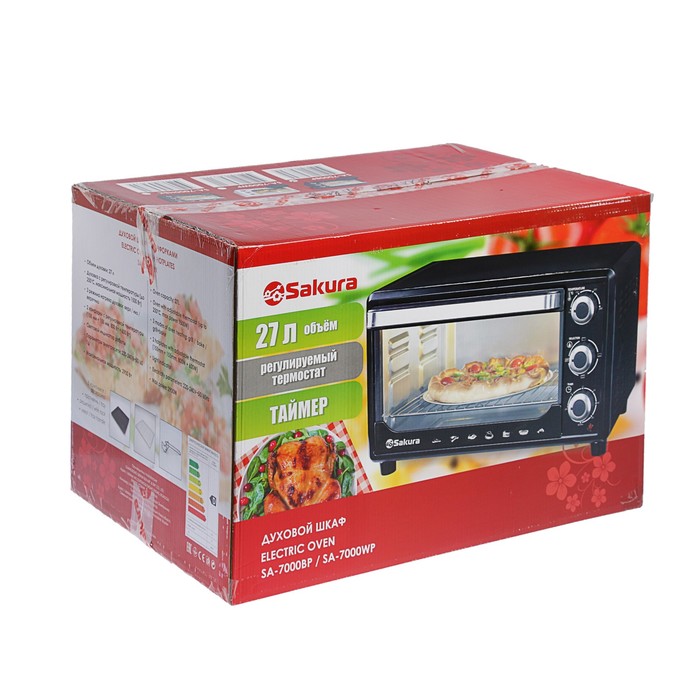 Духовой шкаф электрический SA-7000B, 1500 Вт, 27 л, таймер, черный
