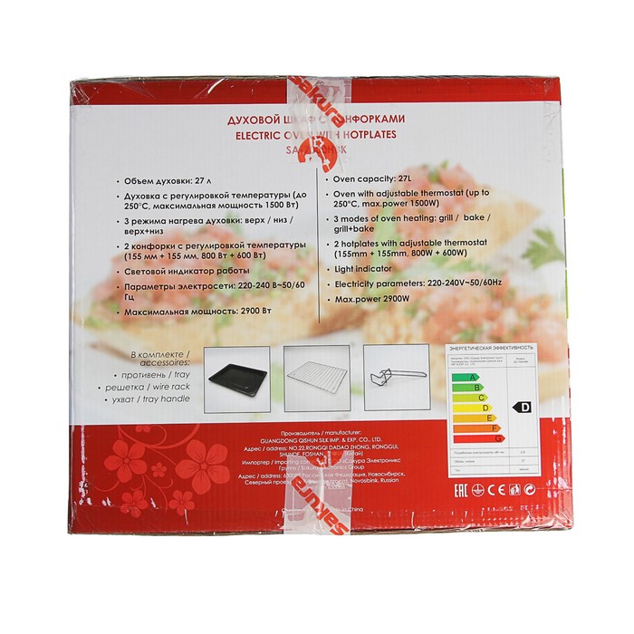 Духовой шкаф Sakura оснащён удобной панелью управления: вы сможете самостоятельно выставлять нужное время, температуру и стороны нагрева для получения желаемого результата. В комплект входят ухват, противень и решётка, которые подойдут для создания различных блюд.