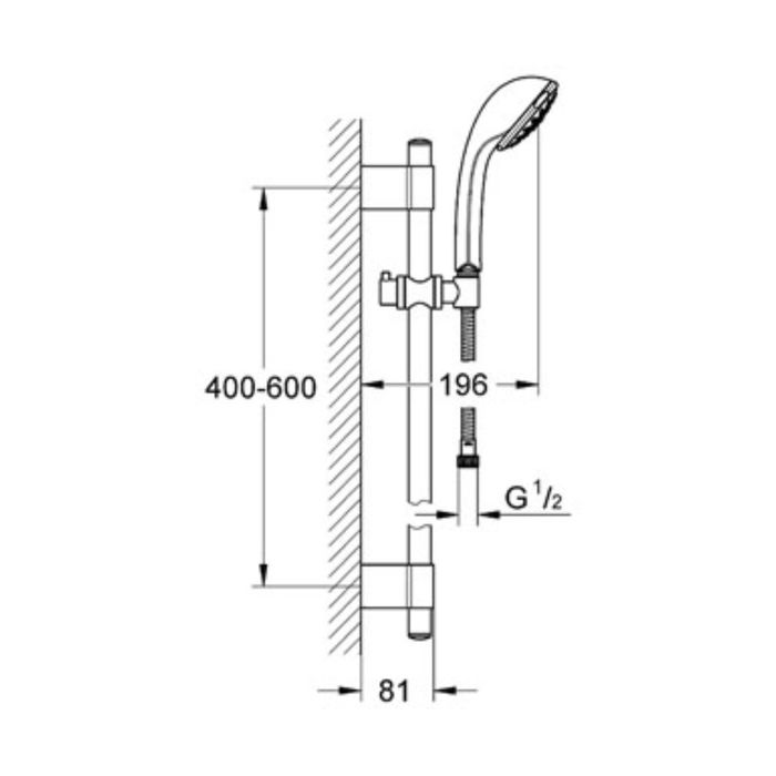 Душевой гарнитур GROHE Relexa 100 Champagne, душевая штанга 600 мм
