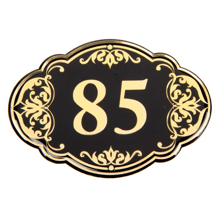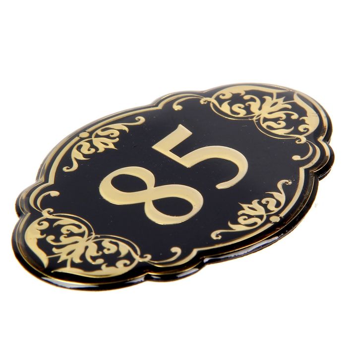 Дверной номер "85", черный фон, тиснение золотом