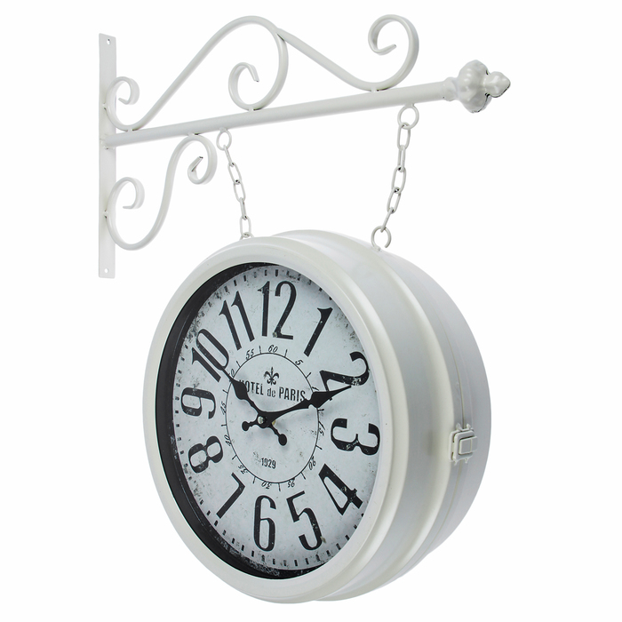 Каждому хозяину периодически приходит мысль обновить свою квартиру, сделать ремонт, перестановку или кардинально поменять внешний вид каждой комнаты. Двойные настенные часы, подвес-цепочка, белые, d=32 см, 55х50 см — привлекательная деталь, которая поможет воплотить вашу интерьерную идею, создать неповторимую атмосферу в вашем доме. Окружите себя приятными мелочами, пусть они радуют глаз и дарят гармонию.