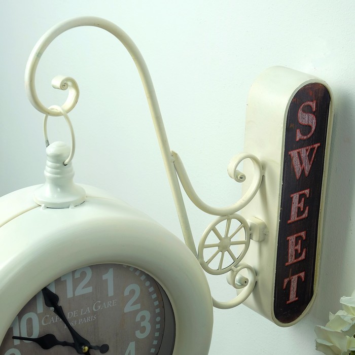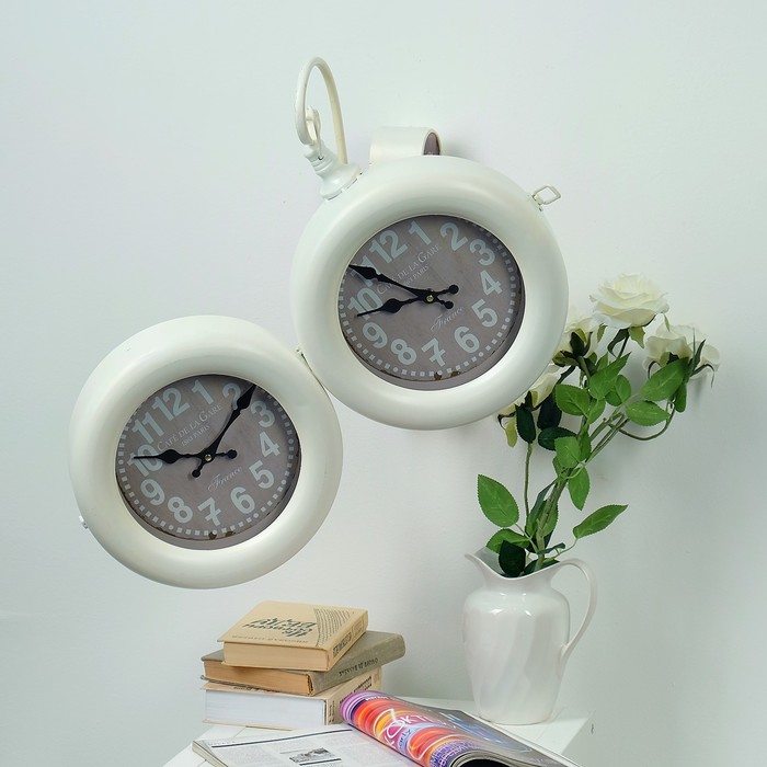 Двойные настенные часы Sweet, белые d=21 см, 52*14*48 см