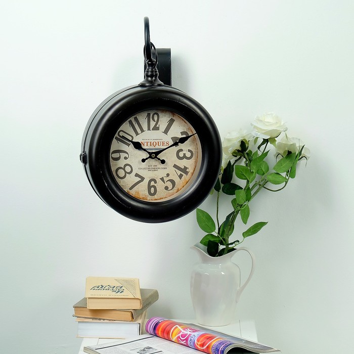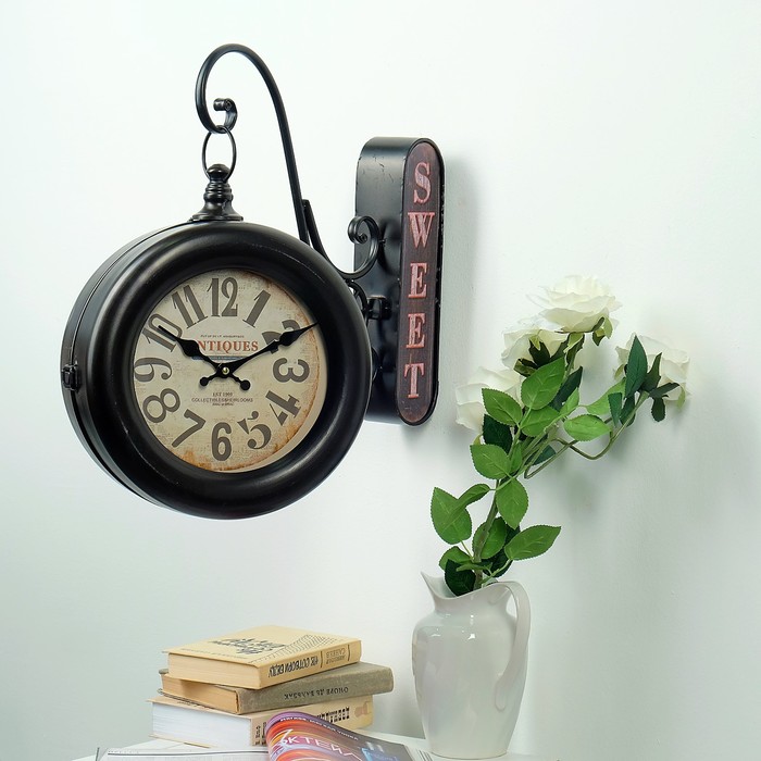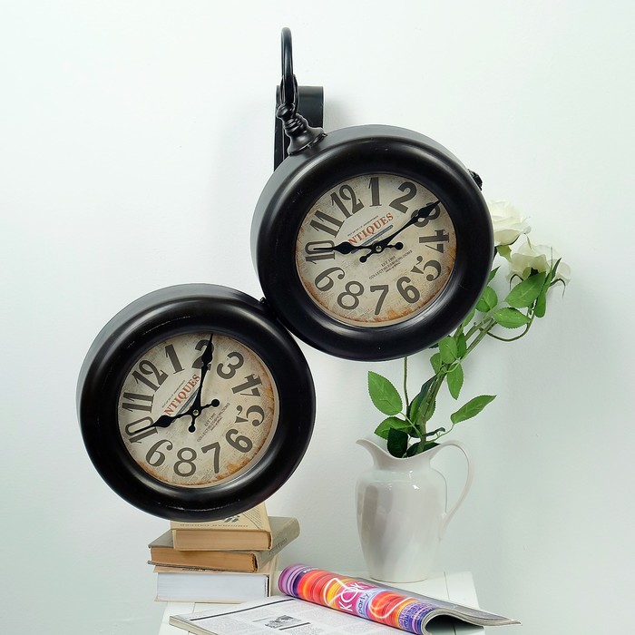 Двойные настенные часы Sweet, под старину, черные d=21 см, 52*14*48 см