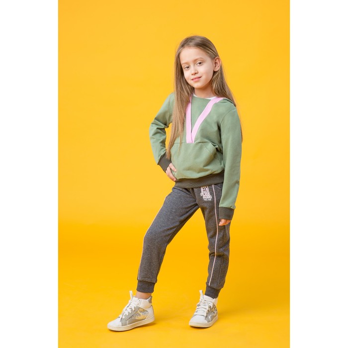 Джемпер-толстовка для девочки "Белла", рост 122-128 см, цвет хаки 1078