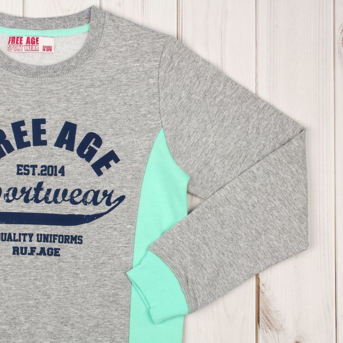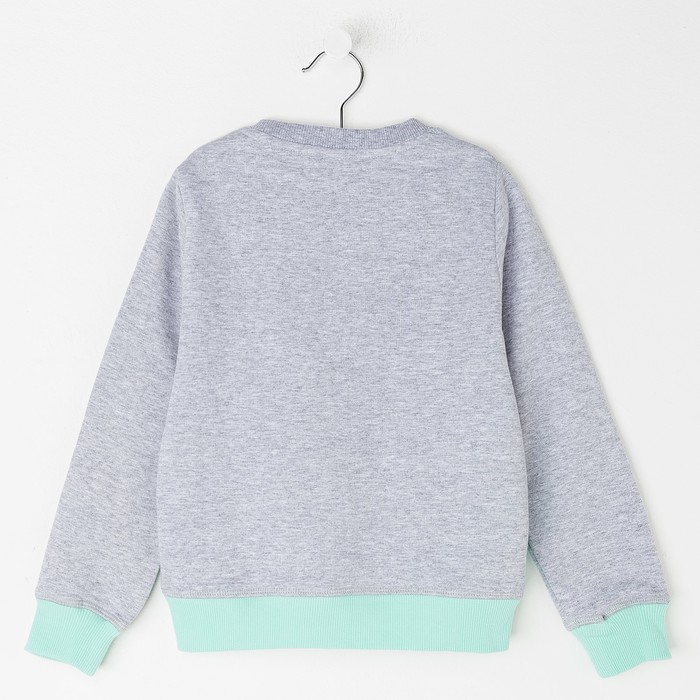 Джемпер (толстовка) для девочки, рост 110 см, цвет серый меланж/зелёный