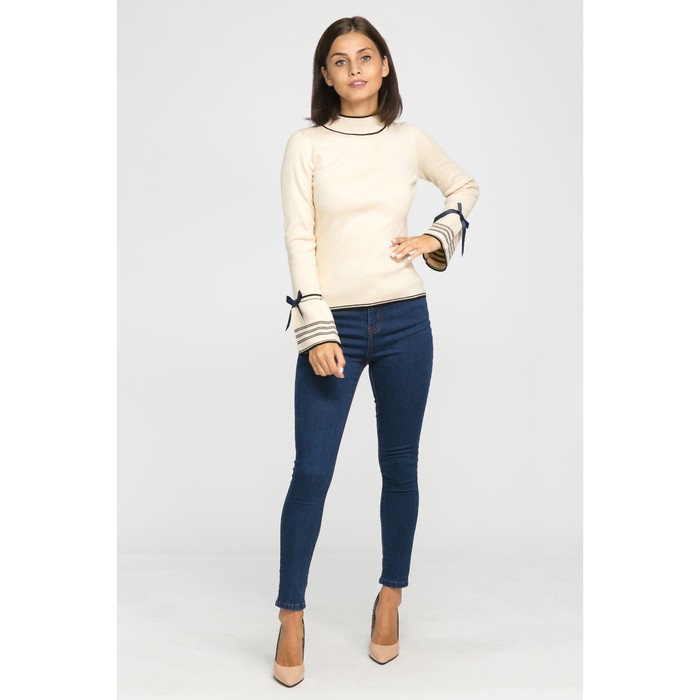Джемпер вязаный ажурные рукава, р.42, цв. бежевый,