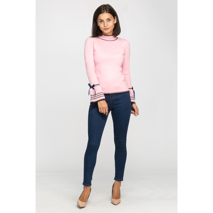 Джемпер вязаный ажурные рукава, р.44, цв. розовый,
