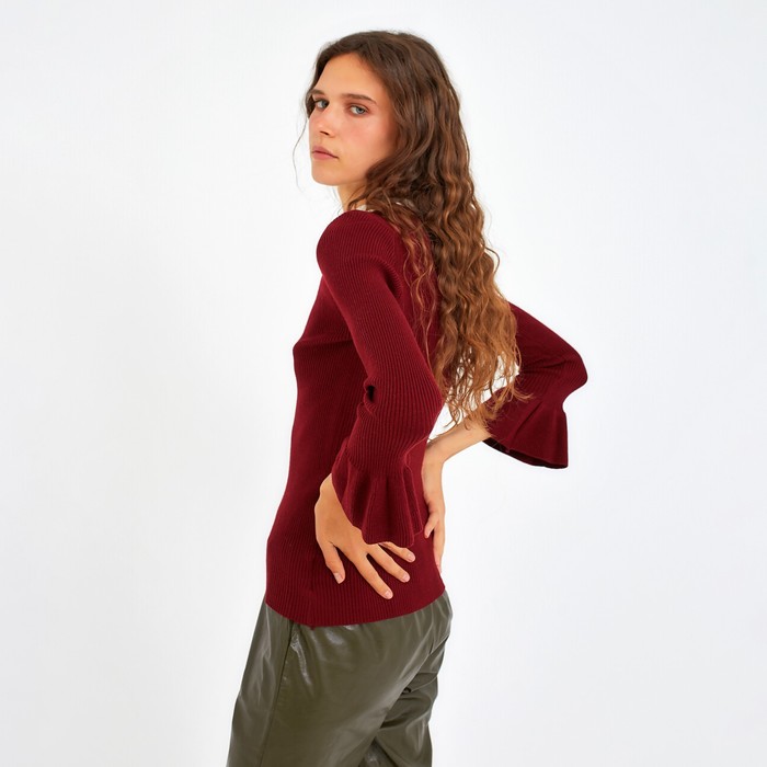 Джемпер вязаный с открытыми плечами, р.42, цв.бордо,