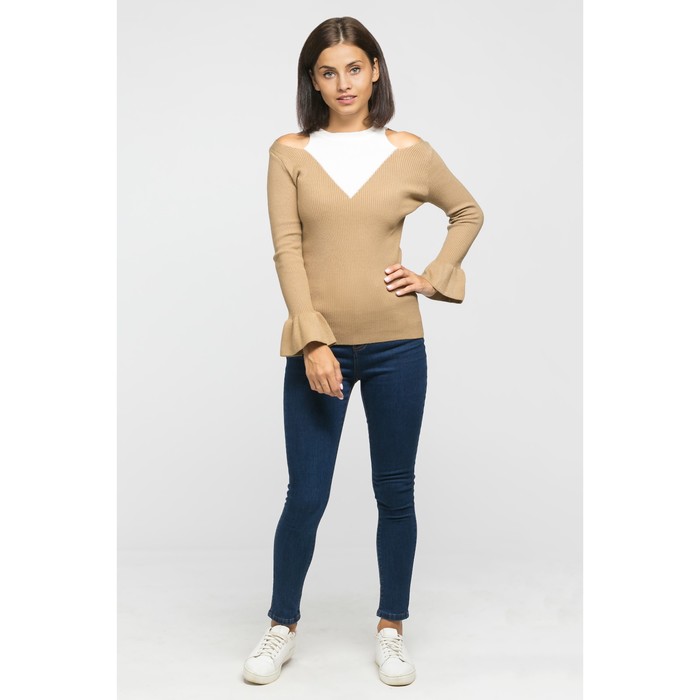 Джемпер вязаный с открытыми плечами, р.42, цв.коричневый