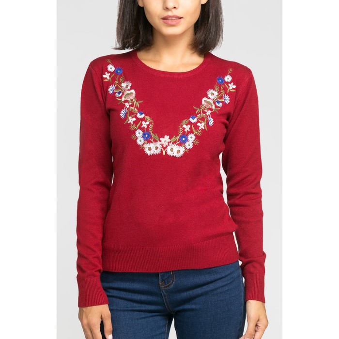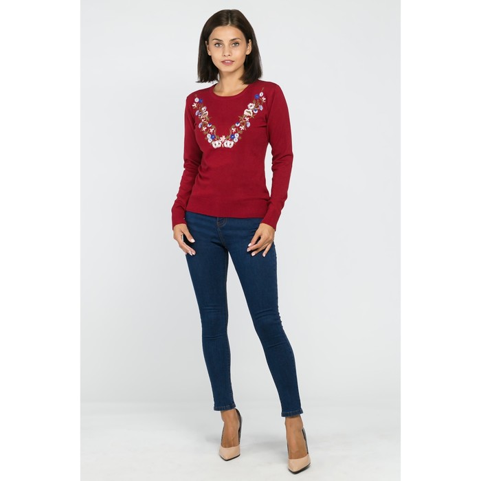 Джемпер вязаный V-вышивка, р.42, цв. бордо,