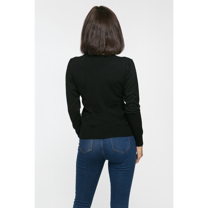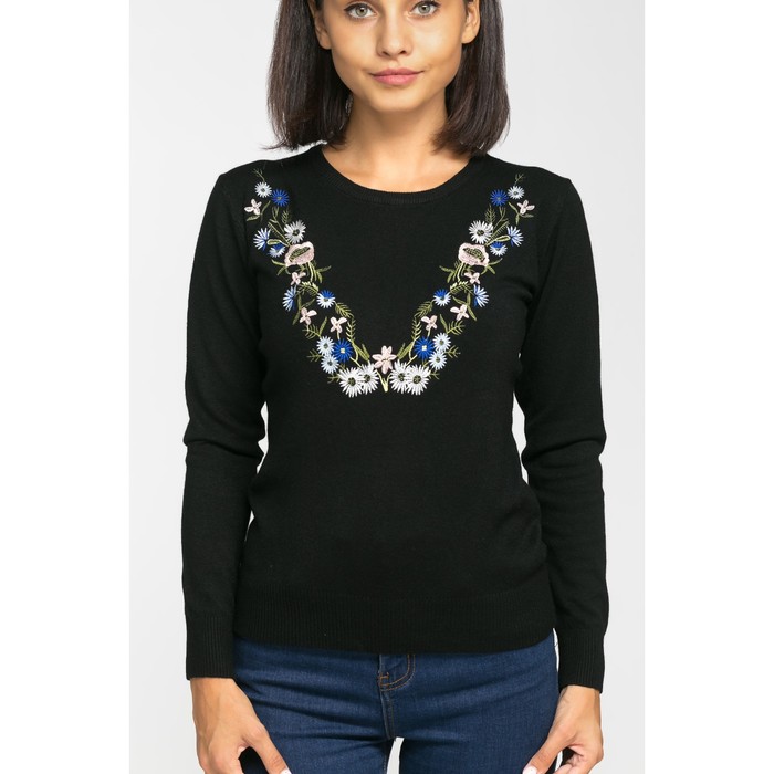 Джемпер вязаный V-вышивка, р.42, цв. чёрный,
