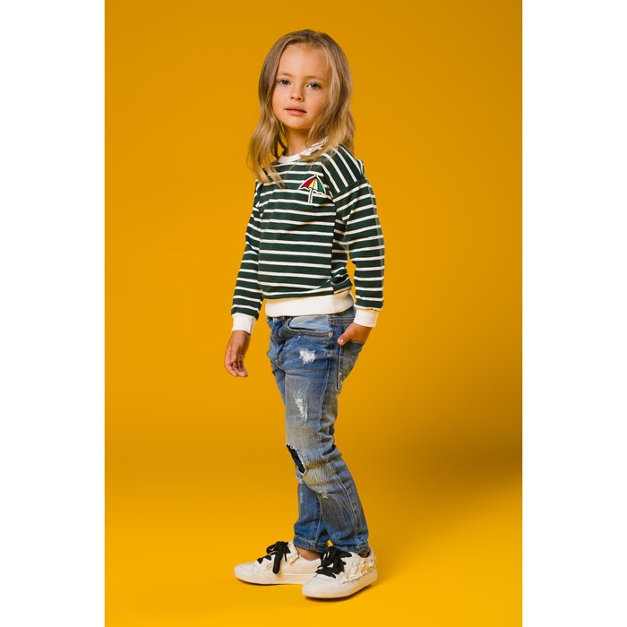 Джемпер Зонтик зеленый в белую полоску, рост 104