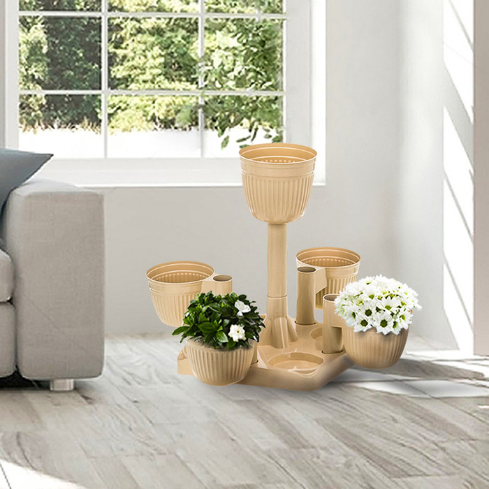 Этажерка цветочная на 5 кашпо (1,75 л d=16 см) "Ливия", цвет белая глина