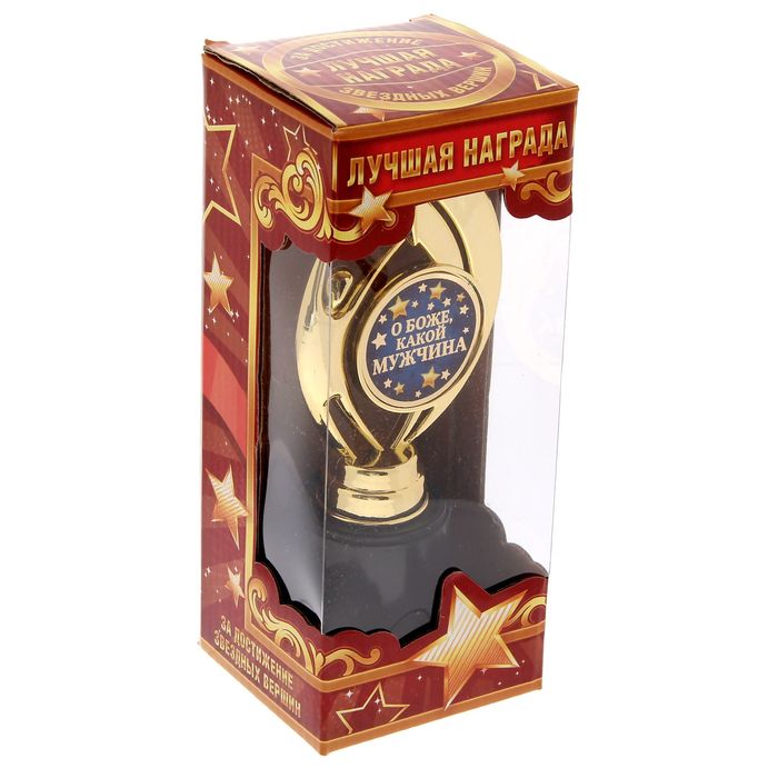 Фигура звезда "О Боже какой мужчина" выполнена из пластика и дополнена бумажным вкладышем с полноцветной печатью. Изделие преподносится в подарочной коробочке с прозрачным окном.