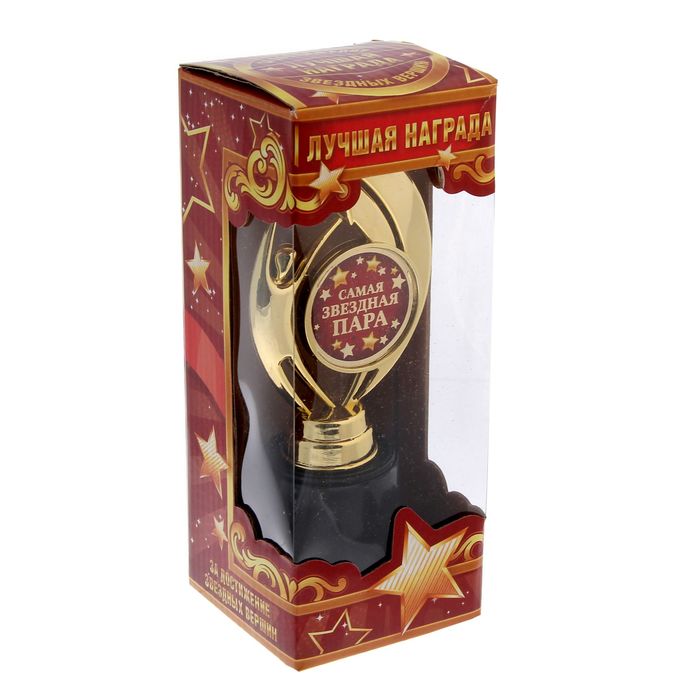 Фигура звезда "Самая звездная пара" выполнена из пластика и дополнена бумажным вкладышем с полноцветной печатью. Изделие преподносится в подарочной коробочке с прозрачным окном.