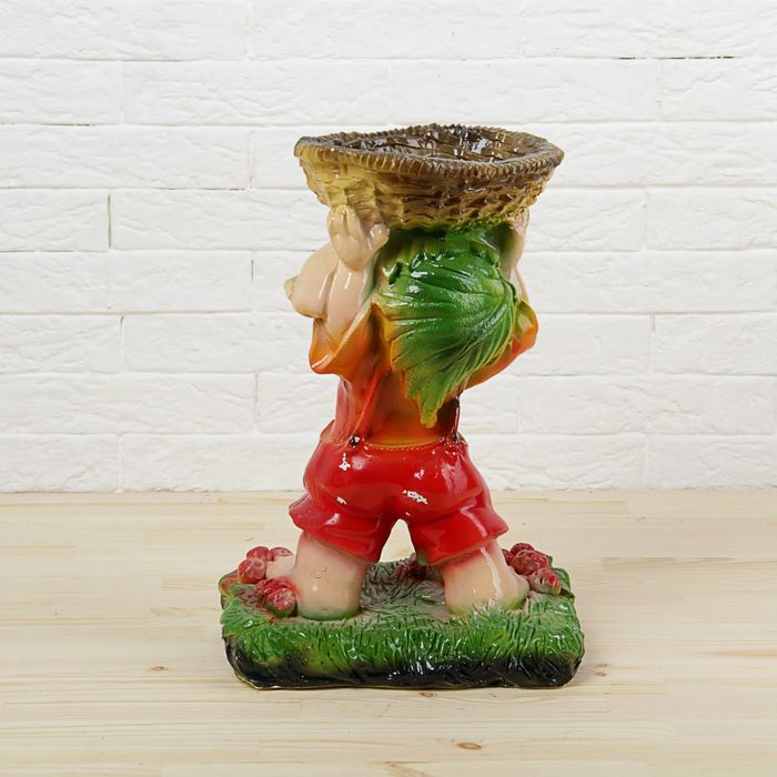 Фигурное кашпо "Гном с корзинкой над головой" 36х24см