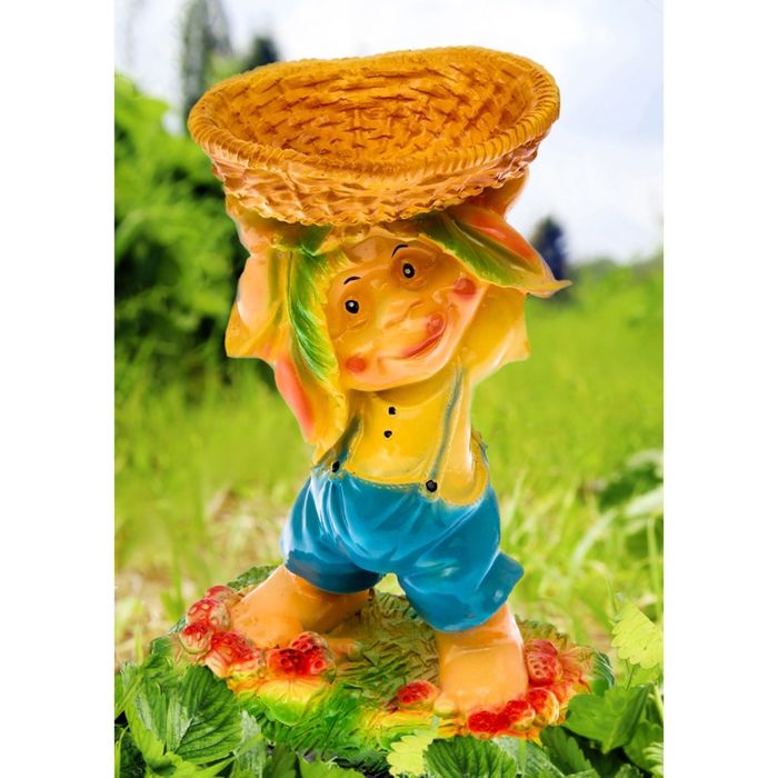 Фигурное кашпо "Гном с корзинкой над головой" 36х24см будет охранять урожай и приносить удачу. Удивите гостей и порадуйте близких — поселите у себя на дачном участке весёлого жильца.
