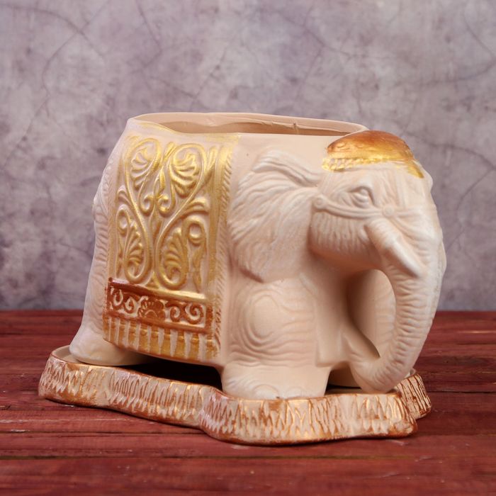 Фигурное кашпо "Слоник" акрил, бело-золотое, 1,8 л