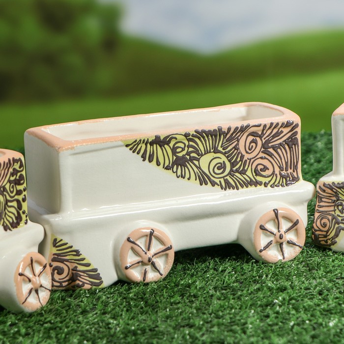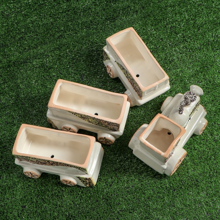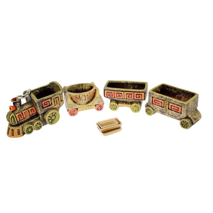 Фигурный набор кашпо "Поезд" 4 горшка, микс позаботится о растении, украсит окружающее пространство и подчеркнёт его оригинальный стиль.