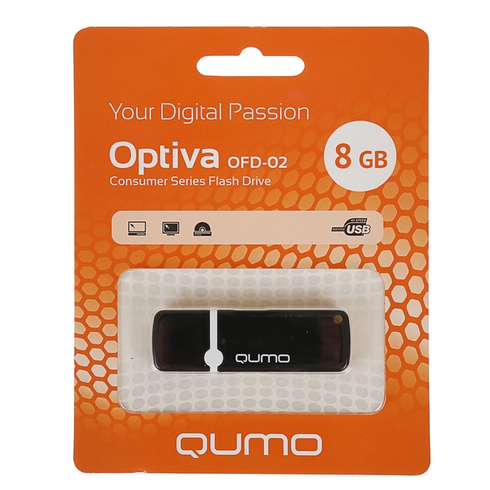 Флешка USB Qumo Optiva 02 8 Гб, черная подойдёт для тех, кому необходимо иметь съёмный носитель для хранения и перемещения данных различных форматов.