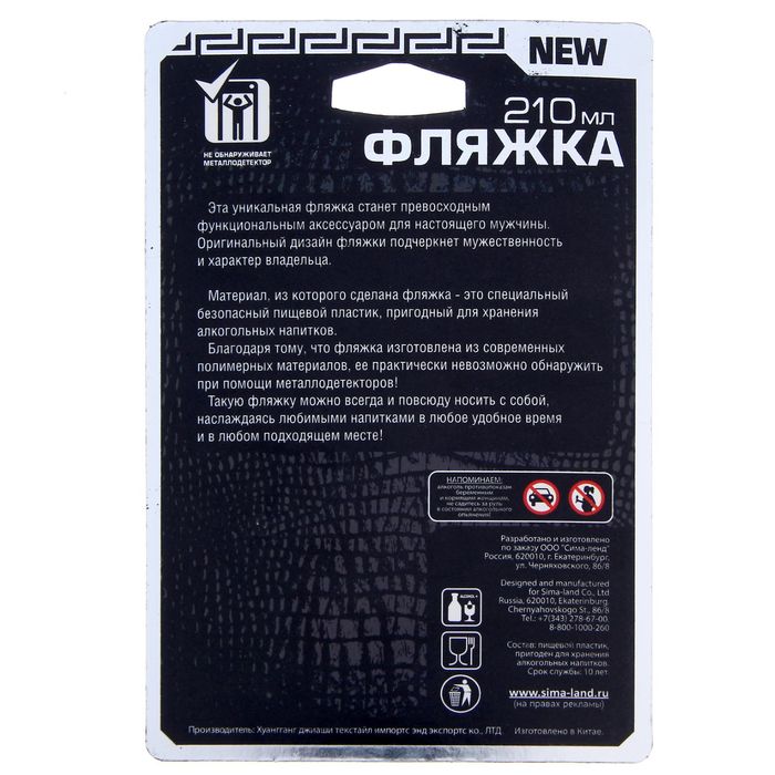 Фляжка "Выпьем за любовь", 210 мл с авторским дизайном станет отличным подарком охотникам или заядлым путешественникам. Корпус из пластика и плотно прилегающая крышка защитят содержимое от внешних воздействий. А благодаря чехлу из искусственной кожи с рисунком её приятно брать в руки и в мороз, и в жару. Подберите интересный принт, который расскажет о ваших увлечениях или убеждениях. Или обрадуйте близкого человека, подарив ему эксклюзивный сувенир. Компактная и удобная фляжка объёмом 210 мл легко поместится в рюкзаке, сумке или автомобиле. Изделие упаковано в подарочную подложку.